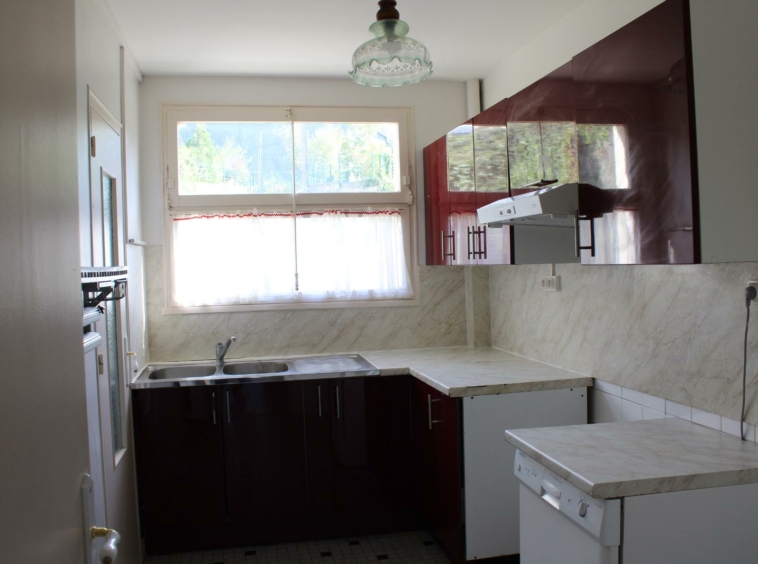 APPARTEMENT DANS UNE RESIDENCE PROCHE HOPITAL, en RDC surélevé comprenant : entrée, cuisine aménagée et équipée, séjour-salon, 2 chambres, SDB et wc.