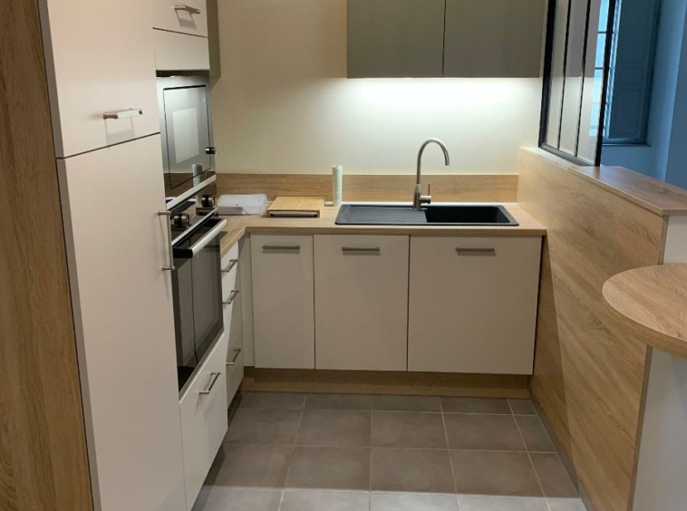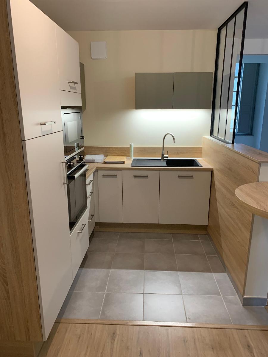 BEL APPARTEMENT RESTAURE DANS UNE RESIDENCE A DEUX PAS DU CENTRE VILLE DE SAUMUR, AVEC ASCENSEUR, comprenant : entrée avec placard, séjour avec cuisine ouverte aménagée et équipée, 1 chambres, lingerie, salle d’eau, wc.